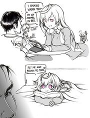 Plutia/Iris Heart are animals in bed. Now pet her and bring her food.